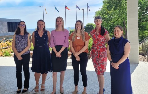 Pictured Left to Right: Victoria Kostadinov, Sarah Powell, Prof Jacqueline Bowden, Christina Norris, Dr Kirrilly Thompson, Dr Ashlea Bartram