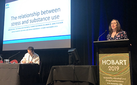 - Examining the relationship between stress and AOD use (which was the focus of her oral presentation at the conference)