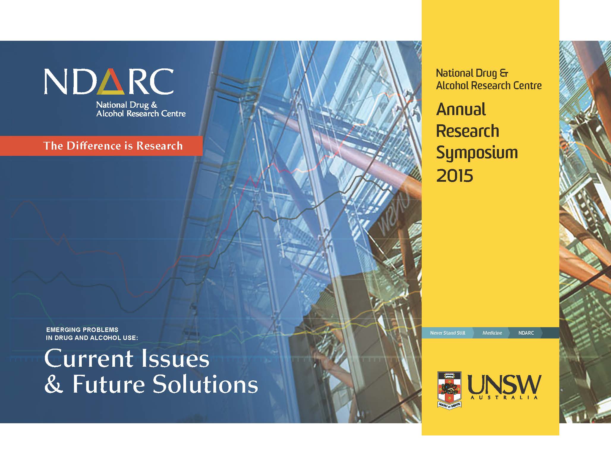 The 2015 NDARC Annual Research Symposium will be held on Tuesday 15 September 2015 at UNSW in Sydney. Entitled Emerging Problems in drug and alcohol use: Current Problems & Future Solutions, the one-day symposium will showcase NDARC research, present latest results from some of our landmark studies and translate the results for clinicians and policy makers. As well as the keynote presentation (see related news story) the program will include results from studies looking at methamphetamine trends in Australia and early intervention and treatment and will close with a discussion panel on ice. Other sessions include alcohol use from pregnancy to adolescence; and evaluation of heroin treatments. There will be five breakout sessions giving delegates a choice of workshops and short presentations on suicide risk assessment and prevention; cannabis use interventions; mental health and young people; and pharmaceutical opioids. We will have 40 posters of our latest research on display and our popular fie minute poster presentation session will focus on interventions for marginalised and high risk populations. Registrations are now open. For more information and to register, visit the NDARC website.